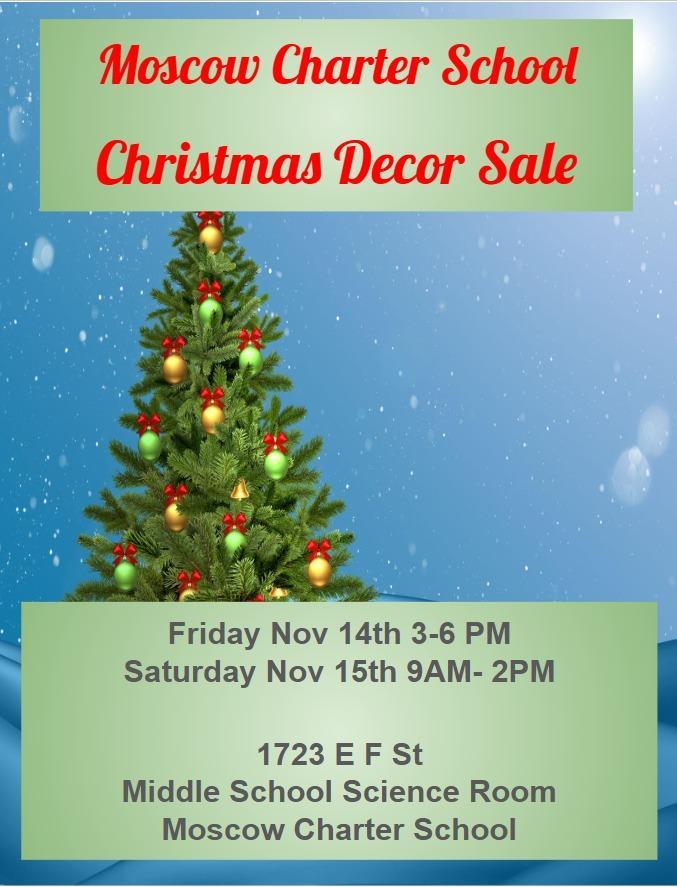Join us next weekend for our Christmas Decor Sale, featuring beautiful decorations all generously donated. Every purchase helps support Moscow Charter School and its wonderful students. Come find festive treasures and spread some holiday cheer — all for a great cause!